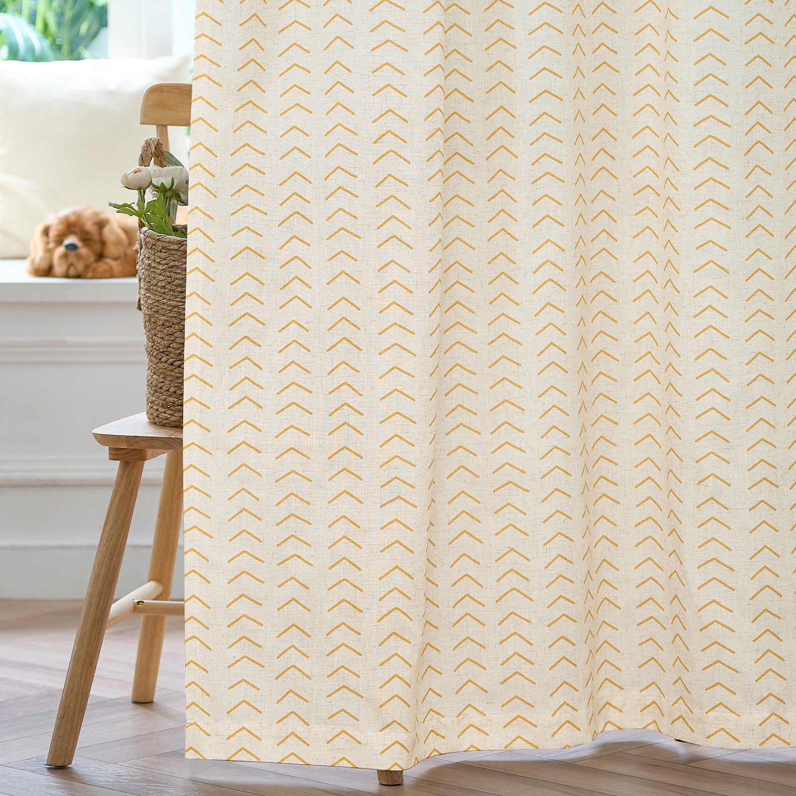 96 Inch Linen Curtains Boho Herringbone